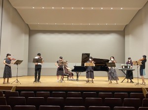 Social Distanceをとって演奏、距離があるとアンサンブルが難しいですね。でも息の合った演奏になりました。