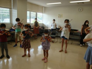 3部はキラキラ星からです。三密を避けるためマスク着用、距離をとってステージいっぱいに広がっての演奏です。